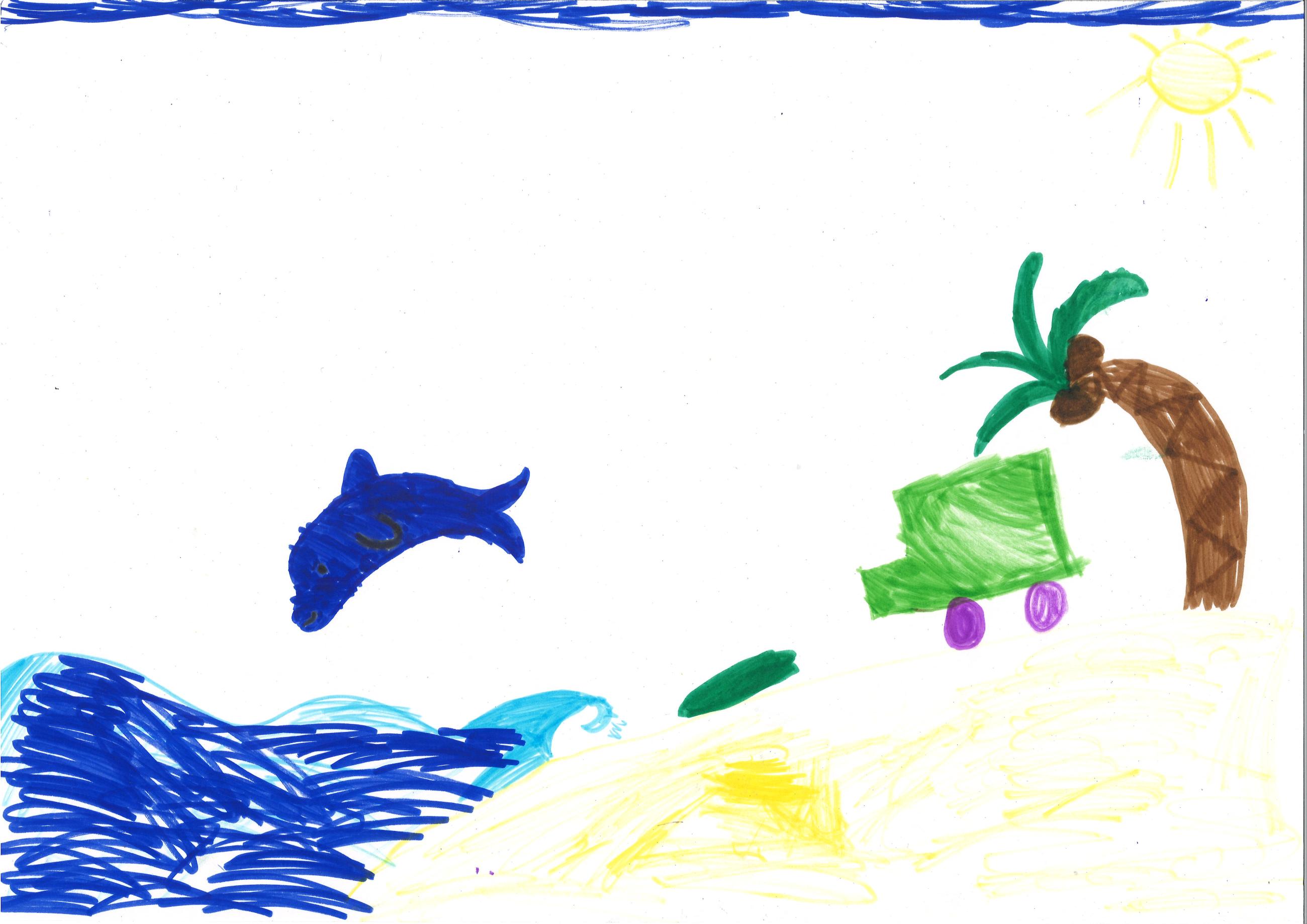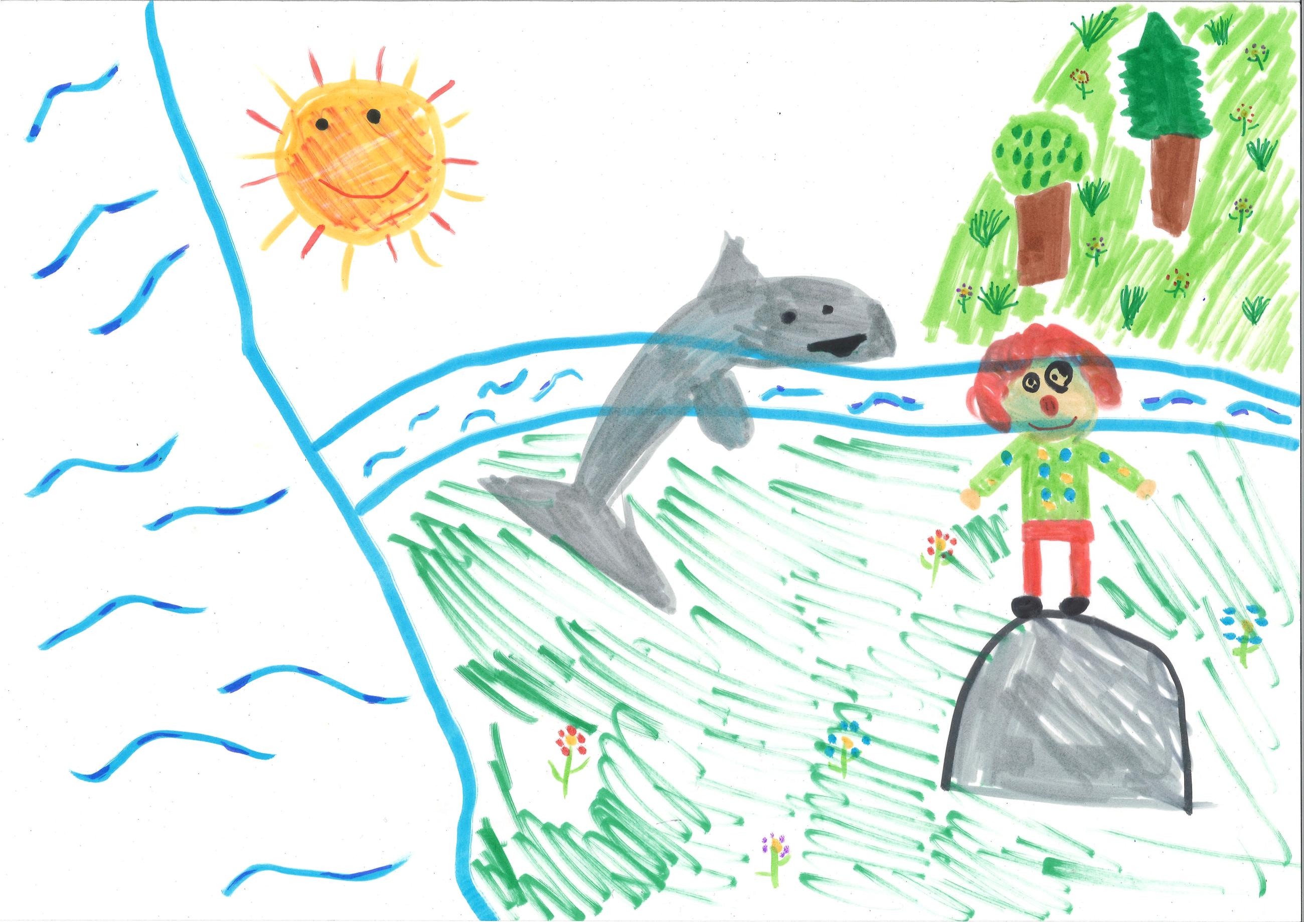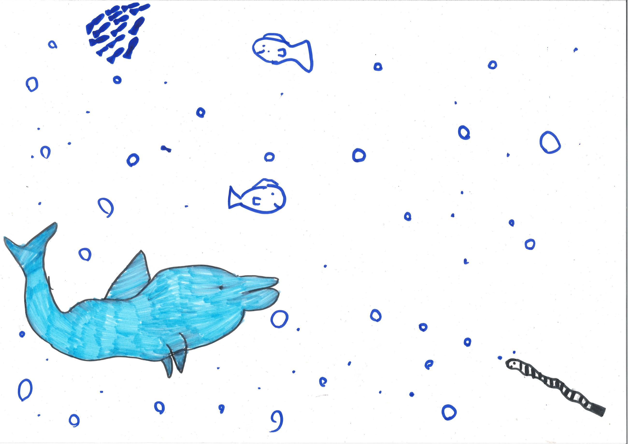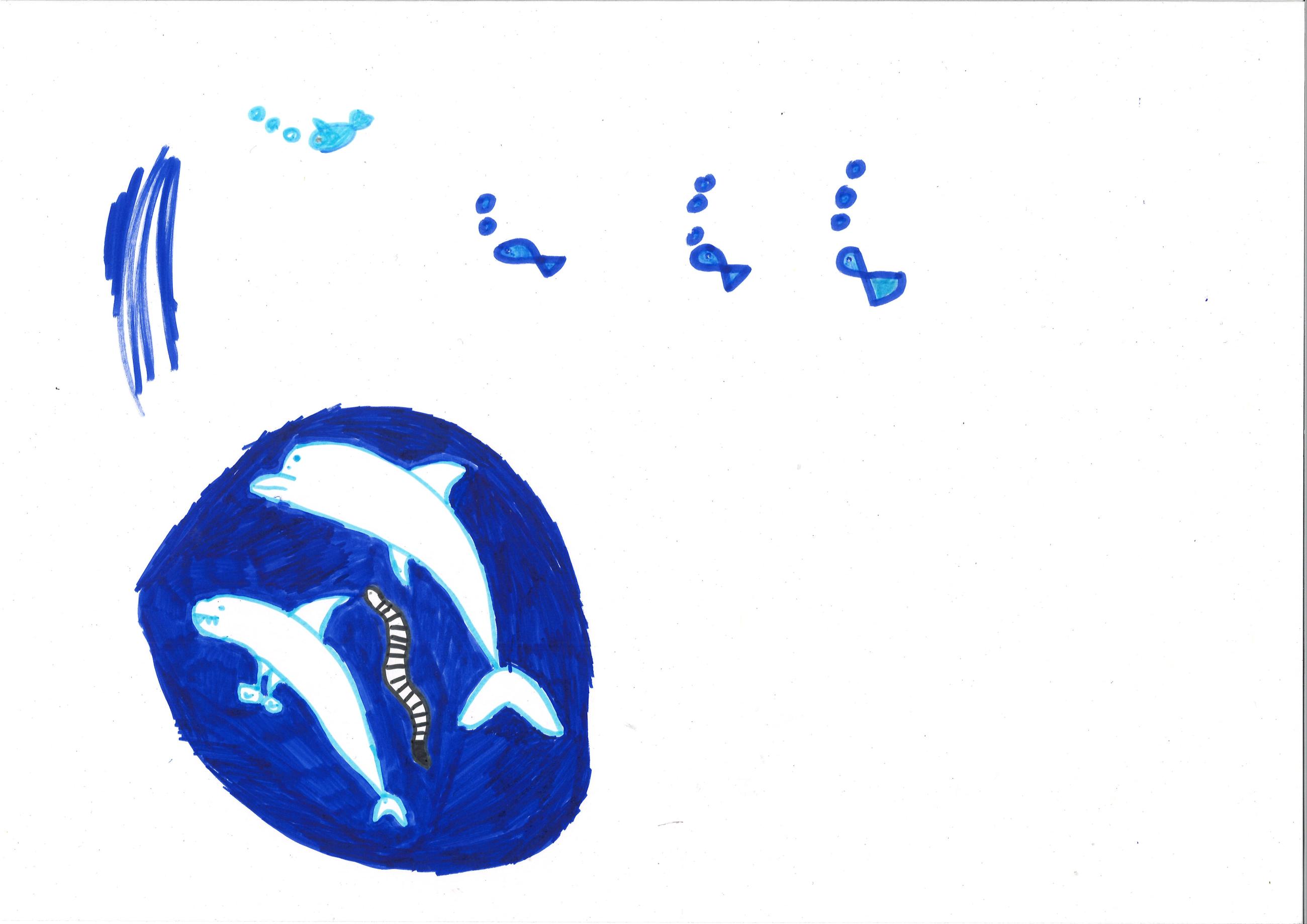 Der Delfin tauchte unter und schwamm Richtung Pazifik. Dort traf er eine Schlange, nämlich einen Natternplattschwanz. Der Delfin sprach zur Schlange: „Beiß mich nicht!” Darauf antwortete der Natternplattschwanz: „Nur wenn du mich in den Altantischen Ozean begleitest.” So begleitete der Delfin die Schlange zum Atlantischen Ozean.