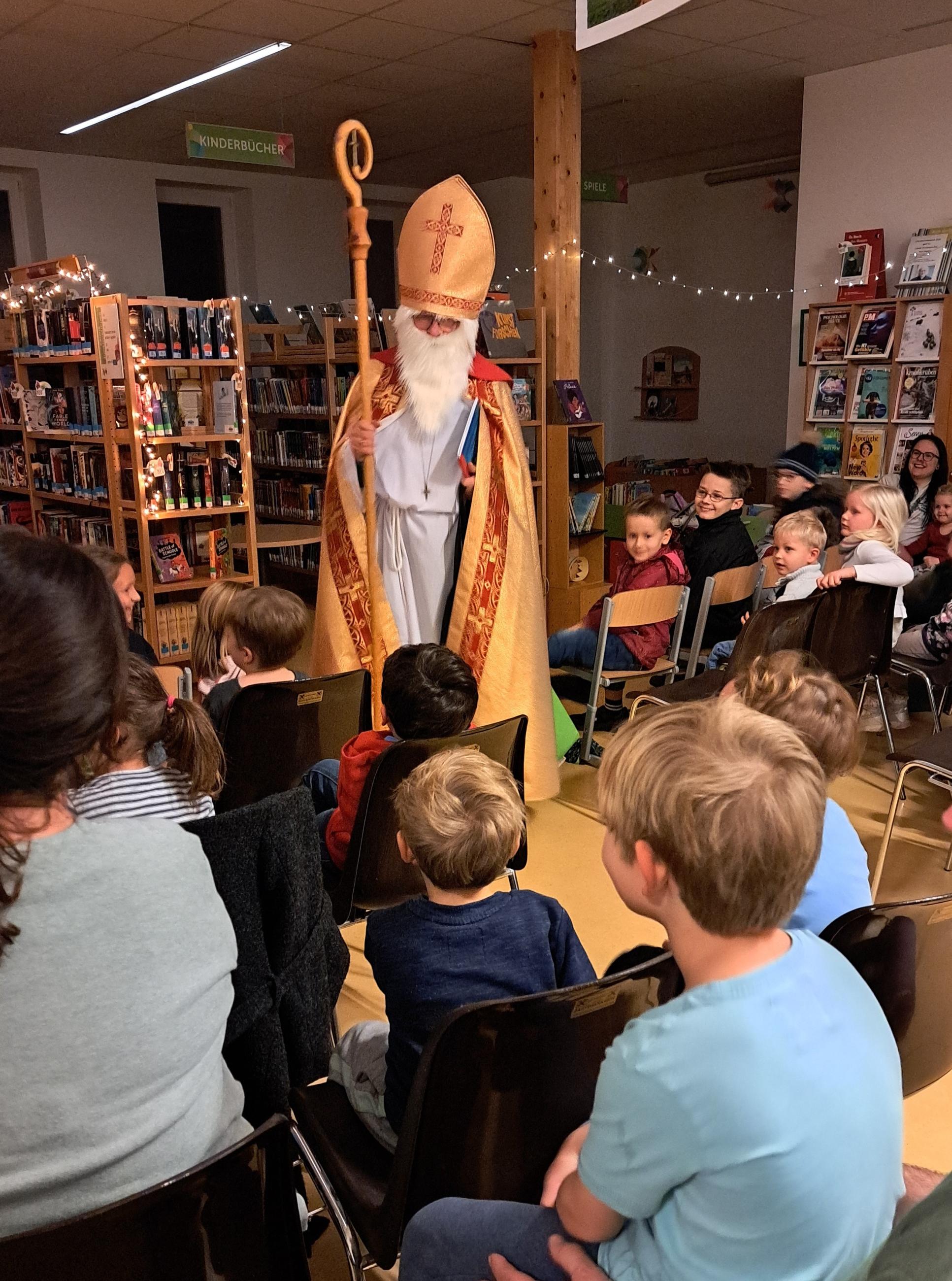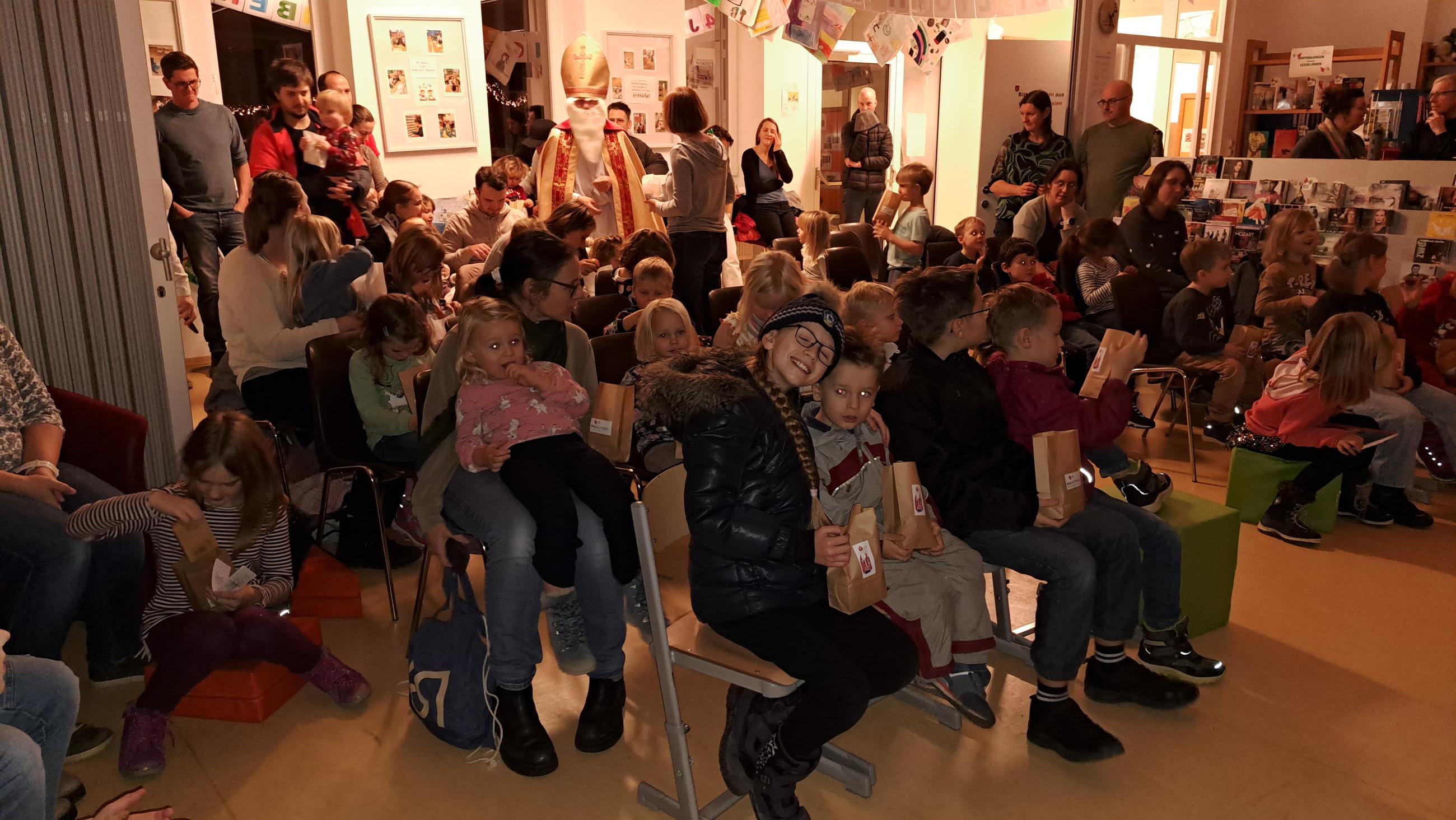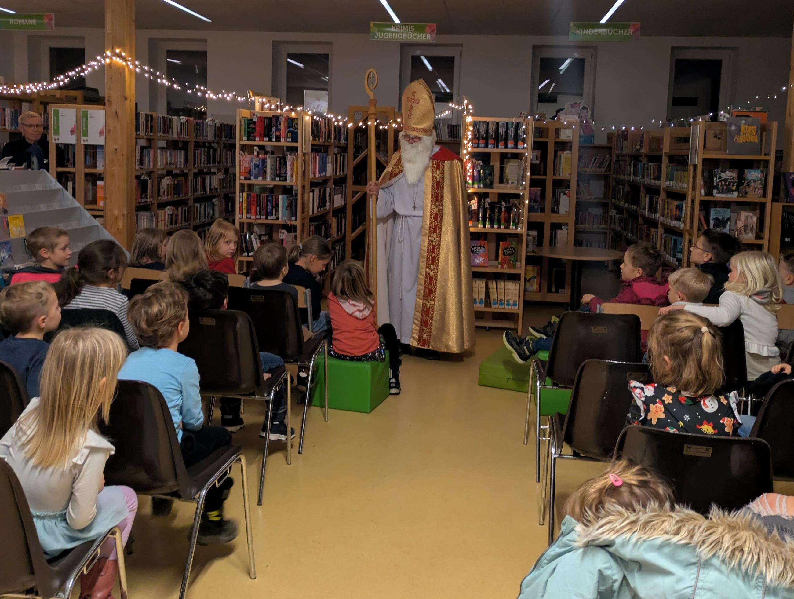 Fröhliches Treiben herrschte kürzlich in unserer Bibliothek: Rund 40 Kinder, begleitet von ihren Eltern, warteten gespannt auf den Nikolaus – und wurden nicht enttäuscht!