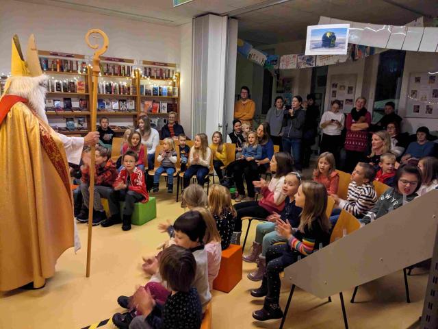 Rund 70 Besucher:innen freuten sich auf den Besuch des Nikolaus in der Bibliothek.